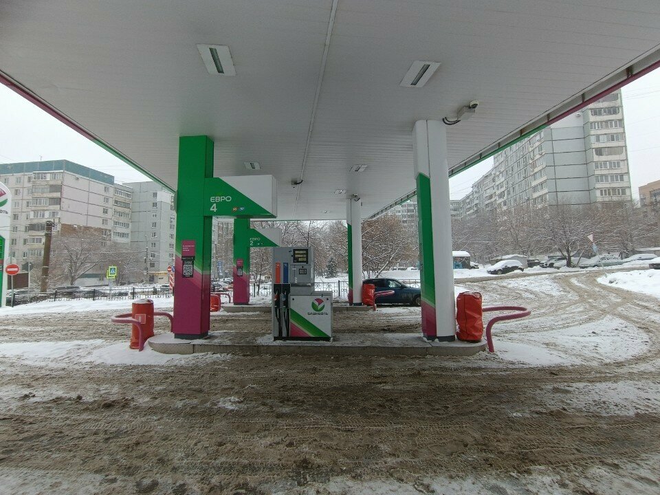 Зимой вся территория по колено в сугробах,ни единого см не расчищено.Более того гигантские ямы и проталины,куда после заправки я села брюхом на авто и случайно повезло,что вытащили троссом. Абсолютно истеричная и никакая управляющая,которой наплевать и на клиента и на территорию-бегает и ищет какой трактор нахаляву припахать.Ни за что я не рекомендую остаться без колеса и застрять там.