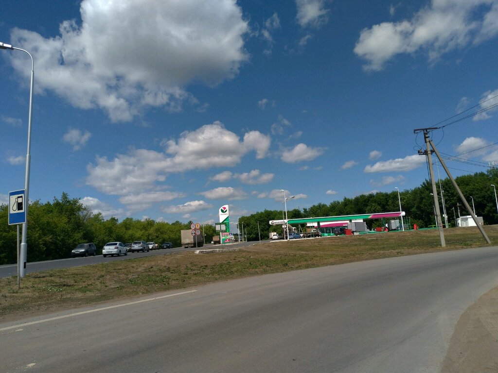 Удобное месторасположение рядом с выездом из города. При необходимости все можно купить, чистые туалеты, хороший бензин. Периодически заправляюсь здесь, когда еду в данном направлении