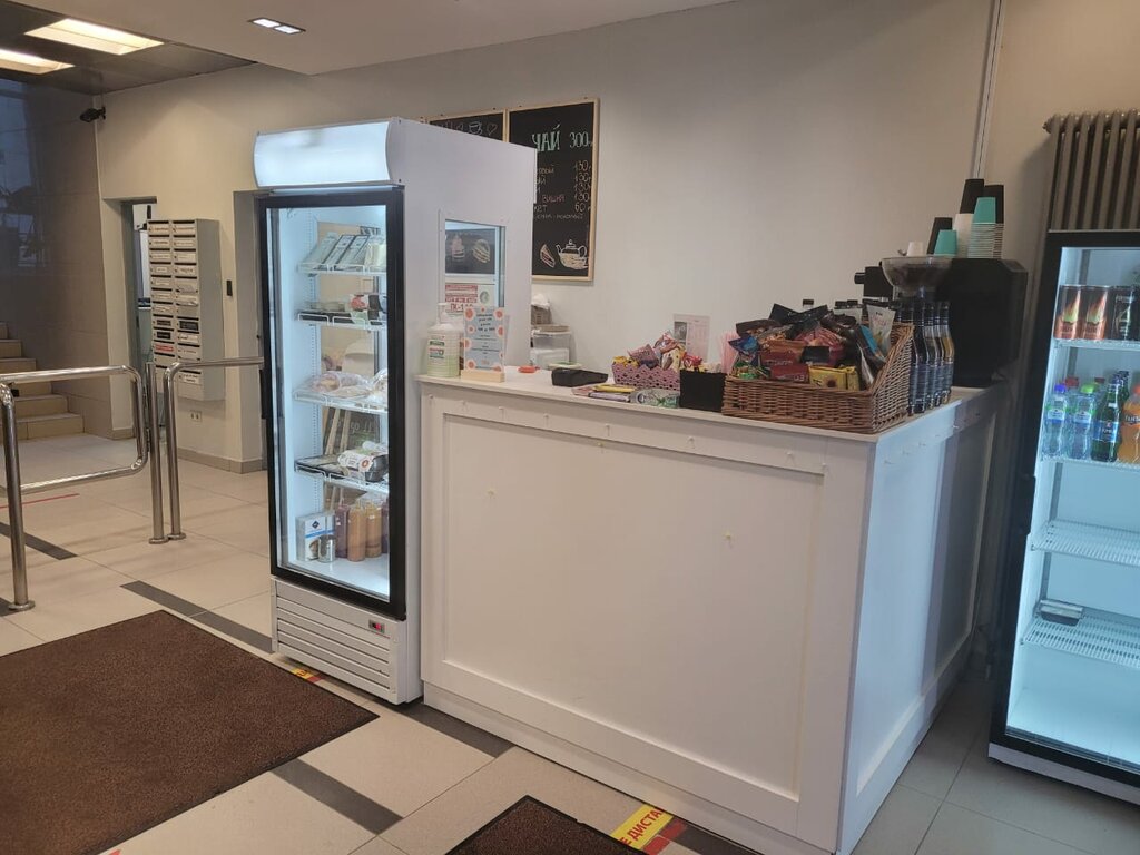 Крошечный пункт питания в небольшом бизнес-центре. Работникам центра и прохожим с улицы можно выбрать несколько свежесваренных видов кофе разного обьема, чая, прохладительных напитков на вынос. Цены средние. Очень понравились пирожные "картошка" в виде шариков - пожалуй, самая удачная консистенция. Имеются несколько вариантов комплексных обедов быстрого приготовления. Хороши к кофе сочники с творогом, а если сильный голод - роллы с курицей. Для легких перекусов есть много различных шоколадок и батончиков.