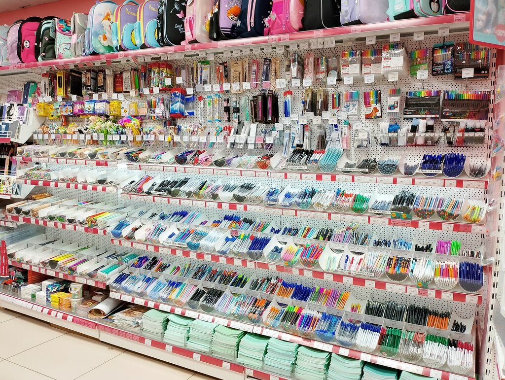 Огромный ассортимент. Есть всякая мелочевка, которую нигде не купишь. Цены вполне себе терпимые. Так что если нужны разные канцтовары, то только сюда