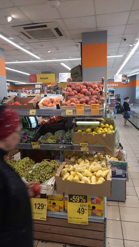 В целом магазин как магазин, можно найти все, что нужно. Плюс кассы самообслуживания. Из минусов: часто палеты с товаром в зале, поэтому посещать магазин с коляской неудобно.