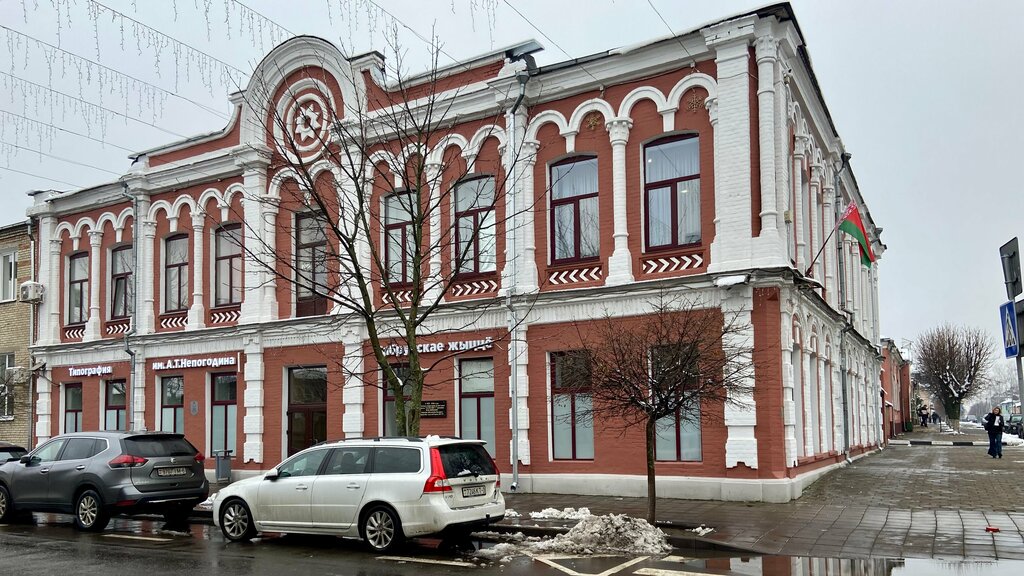 This large two—story stone house on the corner of Muravyevskaya and Policenskaya Streets (today Socialist and K. Liebknecht Streets) was built by the Dayon family (before the 1918 reform, the family name was written as Daion). The head of the family, Meshel Itskov Dayon, was engaged in the manufacture trade and built a wooden house on the central street of the city back in the 1880s. The construction of a new stone house required significant funds, so the owner, Malka Khaimova Dayon, issued a loan from the Vilna Land Bank, and later insured all her real estate in the St. Petersburg Insurance Company Nadezhda. However, 1902 turned out to be a tragic year for the family. In March, Meshel Itskov Dayon died, and in April, during a major urban fire, all the wooden buildings in the courtyard burned down, everything inside the stone house burned out, and even the iron roof survived only partially. The insurance company paid Malka Khaimova compensation for the damage, after which her management filed a lawsuit with the Minsk District Court against the Libavo-Romenskaya Railway, which was accused of causing the fire. The case file, which is stored in the historical archive of Belarus, contains an insurance policy dated 1901, which provides detailed information about the house: the year of construction is 1899, the layout of the buildings, 22 rooms with wooden partitions, papered and painted from the inside, 56 double—leaf and 4 single-leaf doors, as well as two balconies. Despite the insurance payment, Malka Khaimova had to invest a lot of money in major repairs, purchase of furniture and necessary equipment for a large house. In 1903, Malka Khaimova Dayon was included in the lists of Bobruisk merchants of the 1st guild. On the ground floor of her house there is a cloth and manufactory store and a pharmacy of pharmacist Ilya Sventitsky. Ten years later, the pharmacy of Dr. Nikolai (Notel) Veniaminovich Raigrodsky operates here, which is rented by pharmacist Kushel Girshev Roginsky, and Zelik, the middle son of the hostess, becomes an assistant at the pharmacy. Several rooms on the lower floor are occupied by the St. Petersburg Insurance Company (whose agent was the eldest son Chaim) and the Rus insurance company, where Itsko's youngest son, Ayzik, serves. The second floor is occupied by the owners themselves, and doctors also rent apartments: women's doctor Alexander Abramovich Paperno and dentist Noson Nosonov Livshits. Dr. Paperno, respected in the city and a member of various charitable societies, including the League against Tuberculosis, saw patients from 9 to 12 and from 17 to 19 hours. At the end of the First World War, the second—floor apartments were occupied by other doctors, Ilya Mikhailovich Flekel and Lipman Abelevich Shatenstein. The year 1918 became sad for the family again: Malka Khaimova became seriously ill, and at the end of the year, the supply department of the Bobruisk Revolutionary Committee requisitioned all the goods from the store and warehouse, after which the house was nationalized. By that time, there were no heirs of the Dion family left in the city. In the 1920s, when Bobruisk became the center of the district, the building was occupied by the district militia and the criminal investigation department. During the interwar period, police officers used to come here to serve. At the end of the Great Patriotic War, during the retreat of the Nazis, the house was again damaged by fire and left without a roof. After major repairs in the late 1940s, the building was transferred to the House of Printing, later to the printing house named after A.T. Nepogodin. In the summer of 1948, the editorial office of the Bobruisk regional newspaper Savetskaya Radzima was located here, and after the region was abolished, the editorial office of the Kamunist newspaper was located there.