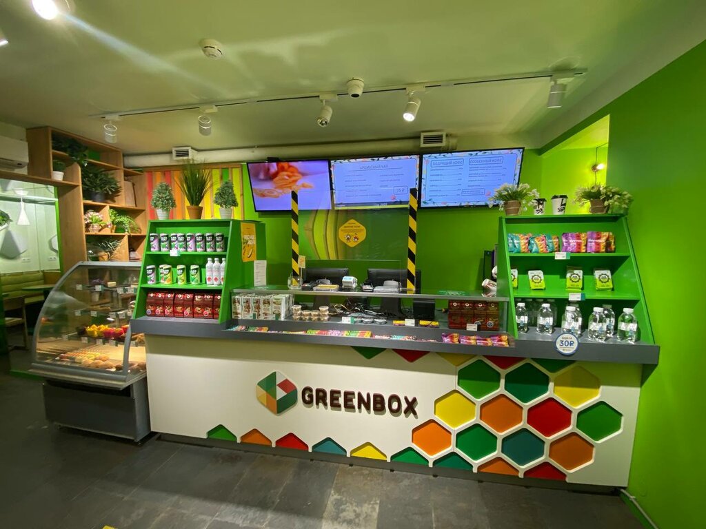 Давно посещаю сеть кафе, в т.ч. эту точку. Есть просторный закуток, чтобы комфортно разместиться. Интерьер приятный, яркие цвета, но не раздражающие. Легко взять перекус с собой или быстро поесть на месте, т.к. еда уже готовая. Можно устроить полноценный обед - есть выгодные комбо, большое разнообразие позиций. Найдется еда и для любителей пряного, и для тех, кто любит более здоровую еду. Минус (он же и плюс), что вся еда в одноразовых упаковках. Это быстро и удобно, но не слишком привлекательно с точки зрения эстетики и экологии. Бывает разное качество одних и тех же блюд - когда более вкусно, а иногда менее. Например, бывает многовато соуса во фреш-роллах. Недавно был огромный кусок индейки в ролле (что в общем неплохо), но овощи почти потерялись Видимо, зависит от смены на производстве и от закупленных ингридиентов. Меня кафе спасало во время учебы - не только обедала, но и могла посидеть с ноутбуком, подзарядить телефон. Недавно зашла с подругой во время прогулки. Понравились новые позиции в меню - холодный борщ (с мясом), боул грин. Цены по-прежнему демократичные, качество и сытность еды устраивает. Можно до покупки прочитать состав и КБЖУ блюд. Также есть приложение с кешбеком, поэтому если часто ходить в кафе сети Гринбокс, можно периодически есть за баллы :)