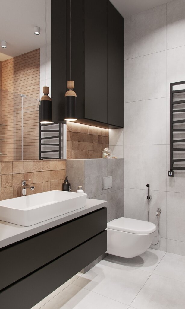 Дизайн-проект с интерьерными коллажами, подбором материалов, спецификациями отделочных материалов, сантехники, электрики и мебели.