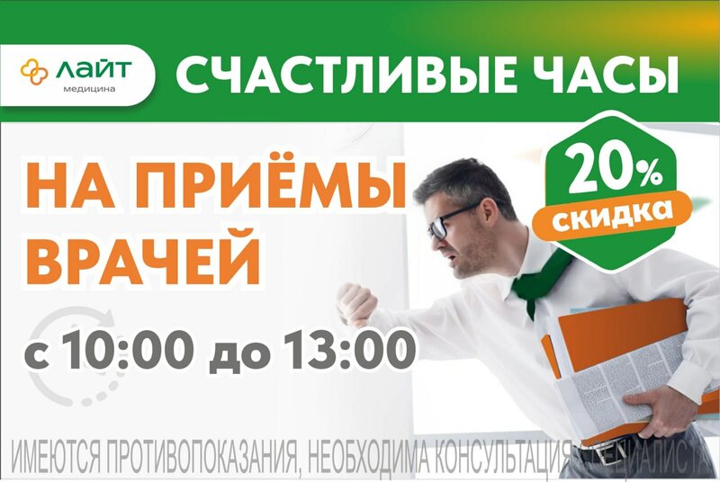 Иногда достаточно просто выбрать правильное время! В медицинском центре «Лайт» города Кирова действует скидка −20% на приём врачей в будние...