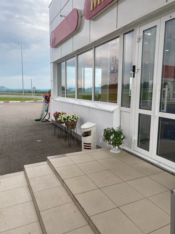 Сам азс неплохой, но единственный минус это туалет, там во первых большая очередь, во вторых туалет всего один и ещё со старым ремонтом, выглядит стрёмно, но из плюсов то, что есть кафе, мы не заказывали поесть, просто сходили в туалет и отдохнуть, второй плюс персонал вежливый, в общем азс 3 из 5