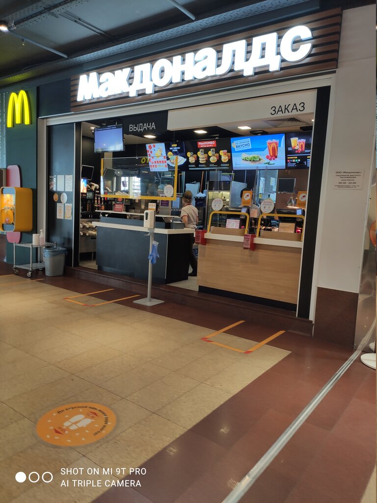 Не очень удобное расположение - со всех практически сторон дороги и стройка; маленькая зона кассы - посередине ещё столб стоит, который закрывает монитор-меню и аппараты, для самостоятельного оформления заказа стоят неудобно - очень близко друг к другу и на проходе