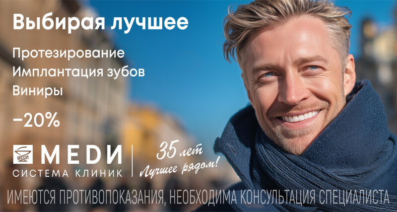 Стоматологическая клиника "Меди", предоставляет любые виды услуг по лечению зубов на высочайшем уровне. Здесь работают действительно классные специалисты, которые используют самое современное оборудование и лучшие материалы и технологии. При таком качестве услуг цены остаются весьма доступными. Я искренне рекомендую эту клинику всем, кто ценит профессионализм врачей и заботится своем здоровье. Персональная благодарность Главному врачу Васильевой Юлии Сергеевне и Алисе!