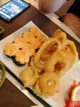 Не понимаю всеобщего восторга от этого "кафе", почему кафе? Потому что язык не поворачивается назвать его рестораном. Были в первый и точно в последний раз. Ждали когда к нам хоть кто-то подойдет минут 10, потом ещё столько же, чтобы сделать заказ, т.к на кнопку вызова официанта никто не реагировал, заказа ждали тоже нереально долго, эстетика роллов тоже оставляет желать лучшего, можно было бы кольца луковые сделать более менее аккуратно и одинаково, такого ужаса я никогда не видела(фото прилагаю), заказывала том ям, вкусный, креветок достаточно и они правда большие. Муж дозаказал пиво, ждал его 20 мин! Когда напомнили принесли в течение 2 мин! Принесли только банку и все! Ни бокала нового чистого, ни че го, остался старый бокал в него муж сам наливал, это разве сервис ресторана???? Чтобы посетитель сам себя обслуживал!?!?! По кухне 50/50 что-то вкусно, что-то прям очень спортно! Но сюда мы точно больше не придем! Цена-качество-обслужтвание не соответствует совсем! Чуть не забыла, ещё мы сидели возле вешалки, верхняя одежда чуть ли не свисала нам в тарелки, ничего что это грязная верхняя одежда и она уж точно должна стоять где-то в стороне а не у стола с едой!!!