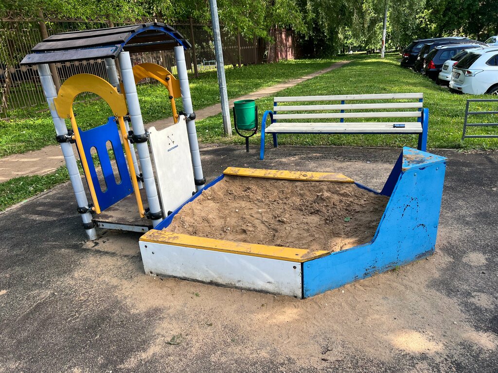 Площадка неплохая , но качество желает быть лучшим. Из интересного есть песочница. Качели для двоих совсем для маленьких. Общий вердикт: ниже среднего , площадка предусмотрена для маленьких детей.