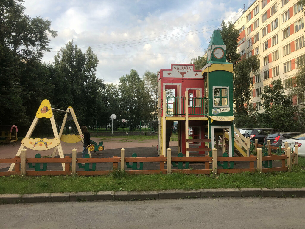 Небольшая, но очень милая площадка во дворе. В стиле Дикого запада. Довольно в хорошем состоянии.
