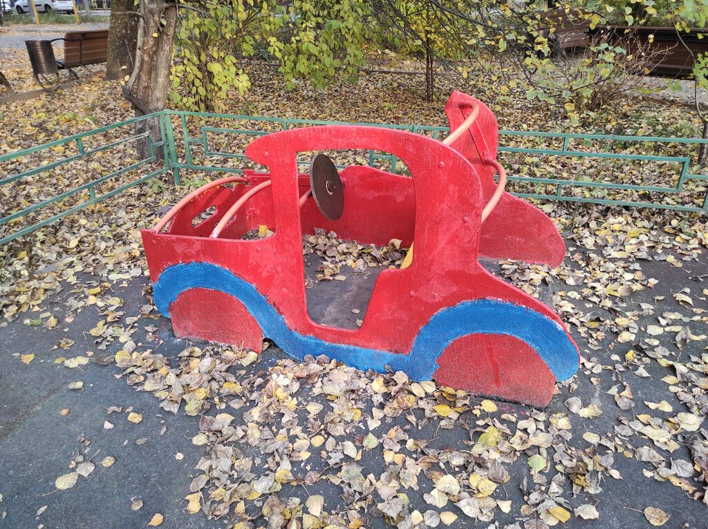 Детская площадка, где ещё сохранились горка и модули от питерских дизайнеров. Хоть немного разнообразия. Очень странно чинят качели для малышей. С другой стороны, главное, чтоб вообще не снесли и фигню не поставили. Сын очень любил машинку и кубики с буквами в песочнице.