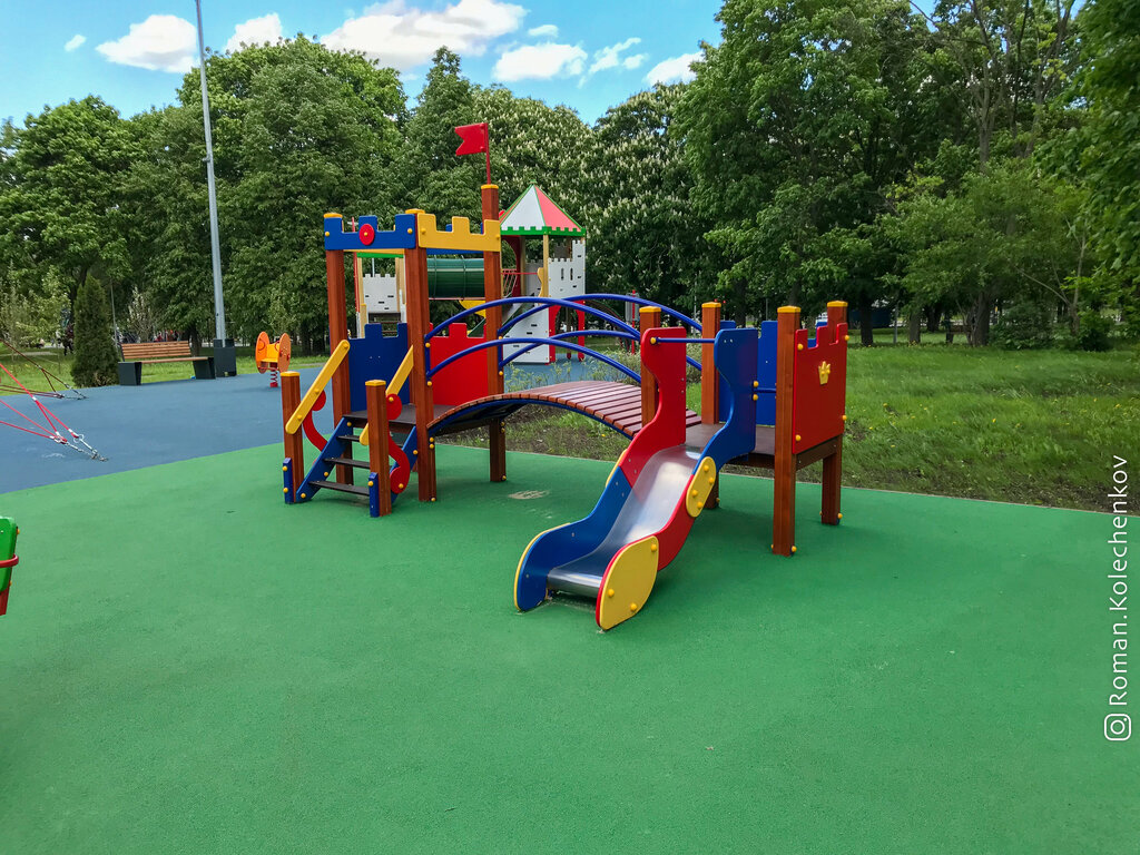 Довольно большой парк, есть 2 детские интересных площадок и 2 подросеовые имеющие довольно экстримальную осново для маленьких детей. Так же там имеется спортивная плашадка и красивая местность. (По близости есть парк с прудом.)