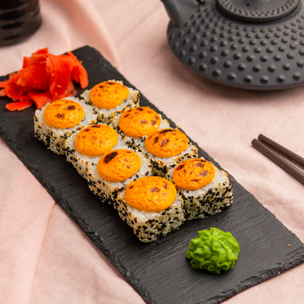 Лосось, икра летучей рыбы, огурец, японский майонез