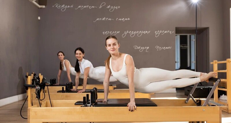 Занятия в группе по 6 человек на тренажерах реформер