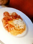 Это было очень вкусно. Уютно. Ароматно. В заведении достаточно плотно друг другу сидят люди, поскольку оно небольшое. Но это никак не доставляет какого-то дискомфорта. Чувствуешь себя как в кругу Старых Добрых друзей. Единственное, что омрачила, это ожидание. Или я была слишком голодная, что время тянулась мучительно долго, но я 15 минут ждала брускетту, а потом, съев ее, ждала пасту еще минут 5. Я понимаю, что это не бистро, наверное все же я была слишком голодной 😊 но и тогда официант должен подсказать, что, например, сырная тарелка будет быстрее брускетты. Или вообще может суп самое быстрое, подогрел немного в сотейнике и подал, ведь его никто не варит под заказ гостя.