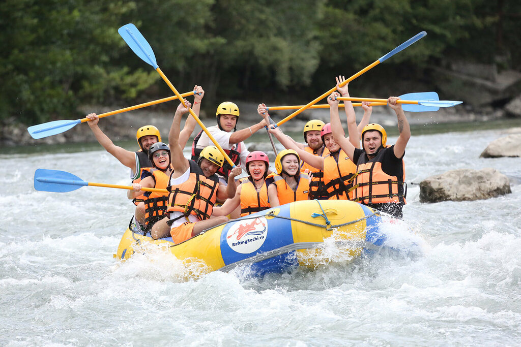 Сплав на современных рафтах по горной реке в Сочи. Стоимость указана за взрослого участника.
