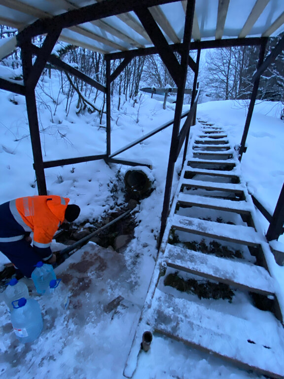 Неплохой родник. Вода течёт из трубы рядом с берегом небольшой речки. Лестница удобная. Вода вкусная.