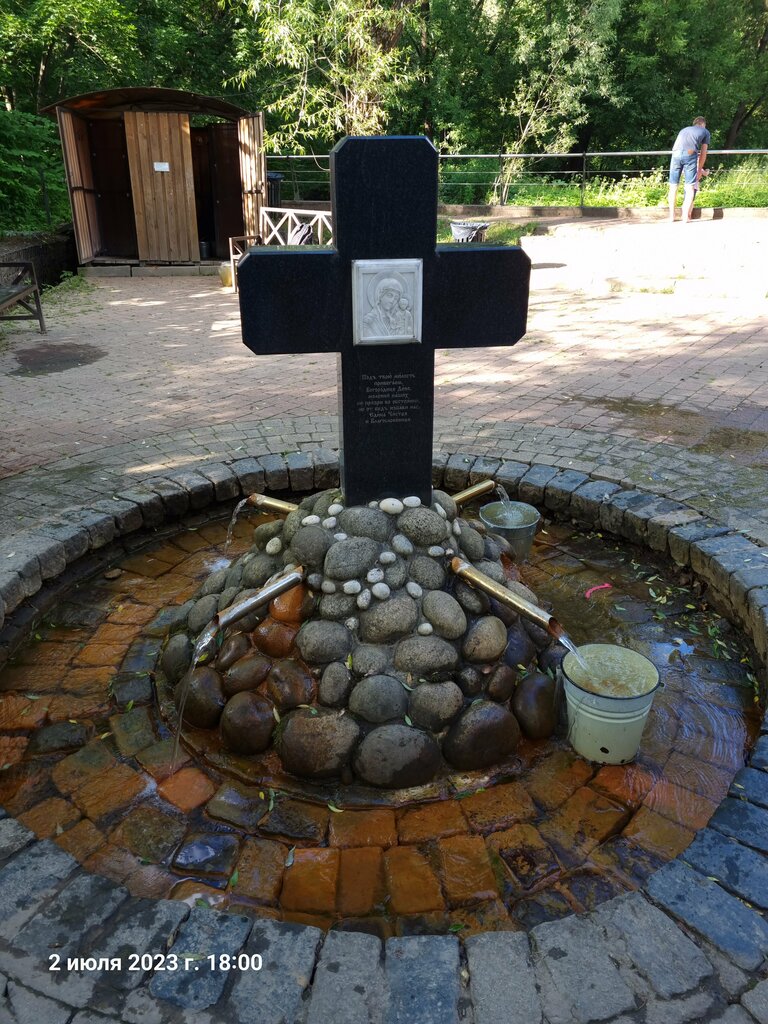 Достаточно благоустроенное, не смотря на локацию ( близость жд путей). Источник с водой и «летним душем» вместо купели. Хорошо облагороженная детская площадка и наличие большого количества скамеек