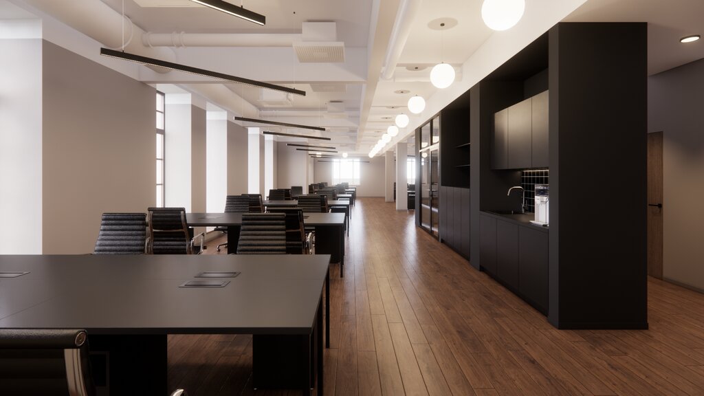 Красивое внешне здание, внутри интерьер слабоват. Плохо спроектированы санузлы, слышен звук смыва унитаза рядом с комнатами, в которых он расположен. Зимой плохо работает вентиляция в переговорках, в них душно. Чёрный цвет стен в переговорках - не самое удачное решение. Общаясь с коллегами по зуму, вас будет плохо видно.