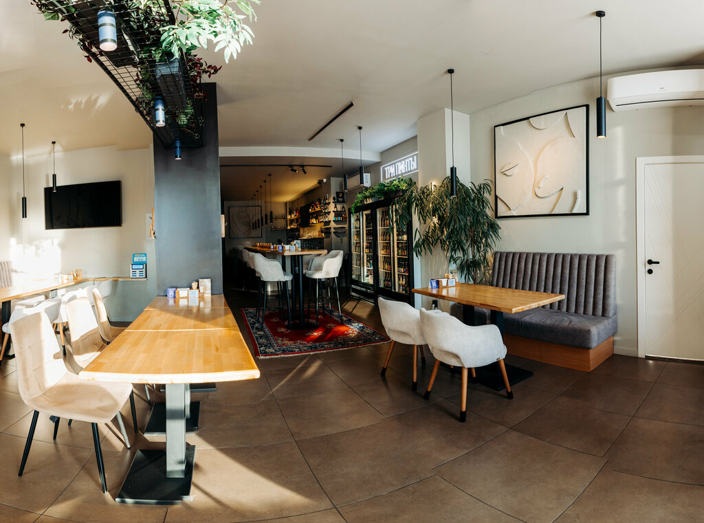 Неплохое заведение. Интерьер лаконичный, приятный. Чисто, аккуратно. Очень приятная и быстрая девушка-официантка. В целом, впечатления хорошие. Меню скромное, но выбрать есть из чего. Готовят очень неплохо, хотя сужу по одному посещению. И есть два существенных минуса: - очень громкая музыка. Разговаривать невозможно, приходится кричать, а при полной посадке это, конечно, ад для ушей. Вышел из бара и подумал, что оглох. - тесновато. Сели большой компанией, сдвинули столы и все, выйти проблематично. Но поскольку кухня и сервис были хороши, не вижу смысла занижать оценку.