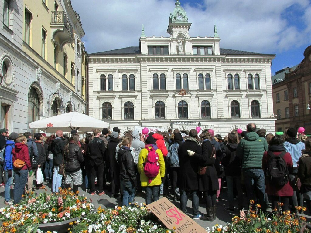 The building of the old town hall on the main square of the city (Stura torjet). A small but very elegant building in the neo-Renaissance style. Since 2020, it has housed the United Spaces coworking space. The building was built in 1645 by the wealthy merchant Klas Edenberg as a private palace. For 260 years (in 1710-1970), meetings of the city council were held there, until the town hall moved to a new, modern building on Vaxalagatan. After the renovation, elite boutiques and restaurants worked in the building, and in recent years, a coworking space.