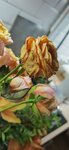 Букеты дорогущие, как и везде. На вопрос Свежий ли - у нас все свежие. По факту, розы доживают, одна то ли отгнила, то ли я уже не знаю, что это. Зелень частично - одна разодранная ветка с нарощенной проволокой, которая этими кусками не достаёт до воды и просто вянет. В моменте - красиво, если хотите, чтобы букет постоял - не рекомендую. Разбор букета и фото - на следующий вечер после покупки, на морозе или у батареи букет не стоял.