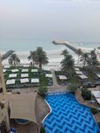 Отдыхали семьей с двумя детьми 4 и 10 лет. С 4 по 11 ноября 2025 г.Это шестой раз в ОАЭ, были в разных эмиратах и разных отелях. В целом отель понравился! Во первых нет проблем с лежаками. Их очень много. Мы приходили к 10ч и всегда находили свободные ( иногда только нужно было их перенести и рядом поставить) .Во вторых хорошее питание. Завтраки на 5+ ( каша, омлет, овощи, сосиски, сыры, колбасы, гарниры, йогурты, оладьи хороший выбор фруктов ( дыня, арбуз, грейпфрут, ананас, яблоки,апельсины, консервированные фрукты) и др. Обеды и ужины на 4, т.к иногда острое мясо и в целом каждый день однообразно, но выбрать можно. Морепродуктов нет. Есть небольшой детский стол,где обычно макароны, греча, куриный бульон. Десерты вкусные.Места свободные в рестаране всегда есть, мы садились на улице, наслаждались видом) Мы брали всё включено. Безалкольные напитки в баре не ограничены. Алкоголя в отеле нет. Но есть рядом в 5ти минутах алкомаркет. Персонал очень вежливый, уборка каждый день. Номера просторные, есть всё необходимое ( удобная кровать и подушки). Из минусов нет территории, где погулять.Есть маленькая детская площадка и детский клуб. Море чистое, пляж небольшой. От отеля бесплатный автобус в Дубай, Шарджу, нужно только заранее записаться. Рядом с отелем много магазинчиков, аптек. В самом отеле открылся магазин с сладостями ( финики, дубайский шоколад), всё свежее, по хорошей цене. В этот отель мы с удовольствием вернёмся!