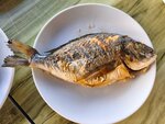3 звезды потому что были 2 раза и ели в 2х разных заведениях. 26.08.2025 были в бело-синем заведение (название точно не помню, что-то со словом fish, это самое длинное и большое заведение рядом с торговыми рядами рыбы). Брали Сибас и лосось. Подали еще хлеб с маслом и 1 л воды, хотя мы не заказывали. За воду в чеке взяли 80 лир. Рыба понравилась, мясо сибаса была безумно нежно. Из минусов этого заведения можно лишь названия старика, говорящего по английский, который показывает злую мину, если оставляешь 50 лир чаевых. 27.08.2025 были в recep’s place - небольшой ресторанчик около рыбного прилавка. Брали Сибас, креветки в котелке (с маслом, перец и чесноком) и оливки завернутые в анчоусы. Ждали мин 30. Рыба была какая-то разваленная, как будто замороженная. Я сначала не поняла, подумала, что просто способ приготовления отличается от первого ресторана, но после креветок до меня дошло, что рыба была несвежая. Половина креветок была свежая, половина тухлая. Оливки были ничего, больше всего понравилось масло от них: туда оч вкусно покато в хлеб. Когда уходили, пара турков, которая пришла позже нас и села рядом получила свою рыбу и креветки за мин 10, обратили внимание, что и визуально оно все выглядело лучше. Печально, что в данном заведение по-разному обслуживают «своих» и иностранцев. Не сделала фото самой еды, кроме оливок, но сделала фото заведения, не рекомендую. —- Все на рынке рекомендую Сибас (Sea bass) как местную вкусную рыбу с безмерно нежнейшим филе. Если она свежая, то филе действительно очень нежно и легко снимается. Продается с долькой лимона и рукколой, поэтому можно не заказывать отдельно салат, если не нравятся салаты с маслом. Когда вы сделали заказ, официанты идут к рыбному прилавку и берут рыбу у своего поставщика, туркам ее показывают, нам не показывали, что ни в 1м, что ни 2м месте. Можно самостоятельно выбрать и вам приготовят