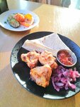 Еда очень вкусная, курица с овощами была немного жирновата, но все равно очень вкусная. Цены приемлемая можно много и вкусно поесть и дешево. Интерьер приятный
