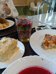 Еда вкусная (особенно борщ, картошка по французки) Наполеон не очень ( Цены хорошие. За цезарь и картошку по французски (курица, картофель, грибы, сыр) - 240 За борщ, картошку по франц., наполеон и компот из клюквы и мяты с медом - 340 Большие очереди, что конечно не удивительно, потому что сюда ходят студенты с ближайших институтов и работники. Очередь от самого входа проходит за 10-15 минут Советую!