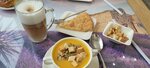 Мой визит был омрачен следующими инцидентами: 1. Отсутствие блюдец под чайные кружки: При подаче чая, а также в процессе его употребления, под кружками отсутствовали блюдца. Это привело к тому, что чай пролился на стол, оставив его полностью залитым и создав значительный дискомфорт. 2. Несоответствие какао: Заказанное какао было подано уже с сахаром, что не было заранее уточнено ни в меню, ни официантом. Отсутствие информации о составе напитка (особенно о наличии сахара) является существенным упущением, так как многие посетители могут иметь личные предпочтения или диетические ограничения. 3. Грязная и мокрая кружка: Кружка из-под какао оказалась грязной. В кружки из-под чая внутри были остатки жидкости. При попытке взять кружку, эти остатки пролились мне на джинсы, что крайне неприятно и неприемлемо с точки зрения гигиены и чистоты. 4. Некорректно приготовленный сэндвич: Сэндвич был приготовлен таким образом, что ингредиенты (начинка) были нарезаны слишком крупными кусками. Это делало его крайне неудобным для употребления, практически невозможно было откусить. 5. Нарушение санитарных норм и стандартов обслуживания официантом: • У сотрудника, обслуживающего наш столик, были очень длинные ногти, что является нарушением санитарных норм (СанПиН) для работников общепита и вызывает серьезные вопросы к гигиене. • Официант поставил поднос прямо на стол гостя, что не соответствует общепринятым стандартам обслуживания и выглядит непрофессионально. Поднос должен использоваться для подачи и уборки, но не должен находиться на столе посетителя. Единственным положительным моментом визита стала выпечка – она была действительно вкусной и свежей.