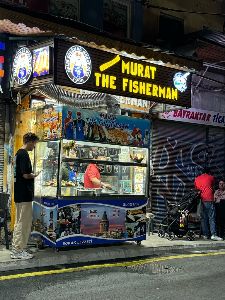 Пятый раз в Стамбуле и каждый раз мы приходим к Марио, чтобы отведать балык дюрюм. И в этот раз не стали изменять традиции. Балык дюрюм 185 лир, к нему обязательно взять айран, это что-то божественное 😋 Вкусно, сытно и демократично, одним словом street food 👌🏻 Первый раз пришли по наводке Настюшки Ивлеевой и теперь это место в нашем ❤️ Теперь тут есть столы, а в первое посещение это был ларёк: заказываешь, при тебе готовят, забираешь и ешь находу. Рекомендую к посещению!