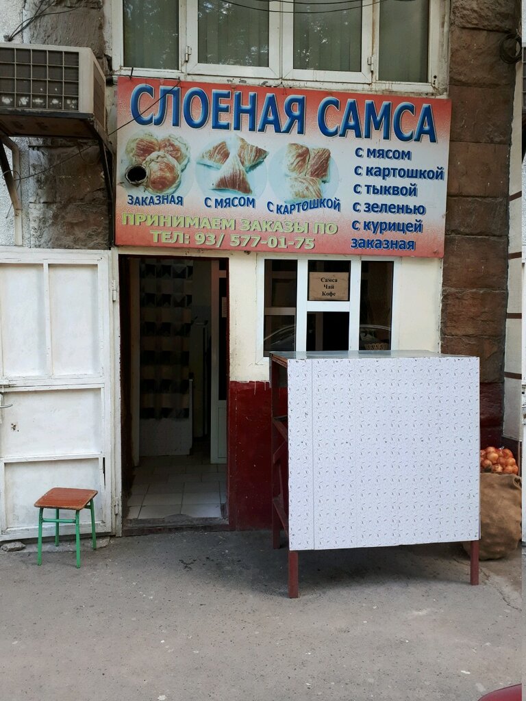 Добавлю отзыв. Парень молодец, сам готовит, продает. Самса вкусная, свежая, хрустящая. Цена вообще улет! Две с картошкой и одна с курицей плюс чай - за все 1$. Плюс соус предложил аджику. Буду заходить чаще. Всем советую.