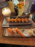 Уютный ресторан на 7 этаже 5* Камелии,самая вкусная в жизни Филадельфия😋Свежие устрицы,суши и сашими из гребешка 👌Салат с хрустящими баклажанами не понравился-баклажаны были резиновыми из-за толстого слоя кляра. Пробовали новинку Осидзуси-вкусно👍🏻Утка по-Пекински-необычно,вкусно,но скорее на любителя-гештальд закрыт😅 Впервые были здесь в марте 2023,тогда все тоже было вкусно,но мебель в ресторане была «уставшая» Сейчас обновили мебель,интерьер,все супер,очень приятное место 👌