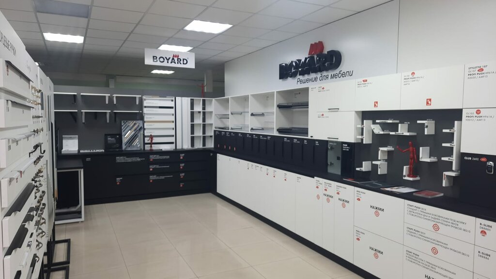 Большой выбор фурнитуры все основное в наличии, если что-то нужно под заказ оперативно привозят. Менеджеры молодцы, выездные менеджеры постоянно приезжают привозят новинки, обновляют образцы. Официалы -Дилеры Hettich, Boyard, вся фурнитура с гарантией. Доставка по городу Бесплатно.