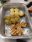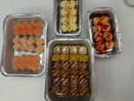 состав: Рис, лосось филе, майонез, сыр моцарелла, помидор, лук зеленый, соус Тайский, соус Спайси, паприка молотая, кунжут