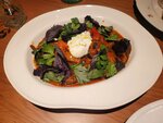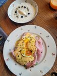 Вывод для тех, кому лень читать. Не тот восторг, что был в 2021. По-прежнему достойный уровень кухни в обрамлении раздражающих мелочей, которых в сумме набралось на минус балл. 4 из 5. Вот взять меню - оно тут в двух версиях, одна из них с переводом на английский, и как назло мне досталась именно она, и взгляд тут же стал цепляться за ошибки перевода. Паста по-английски pasta! Не paste. Блюда "на компанию" лучше переводить 'to share' ну или 'for 4-6 persons', а не for company. Ладно, английское меню никто не читает, кроме меня, в остальном-то норм? Нет! По-прежнему непонятки, какой-то враг ресторана верстал и согласовывал макет. Смотрю в раздел "Паста" (да-да, Paste) - там "кебаб с фасолью". Не знаю, какая версия хуже - что кебаб попал не в тот раздел, или что тут есть паста с кебабом с фасолью. (Проверил на сайте - вот там нормально свёрстанное меню, там понятно, где кебаб, а где паста). Меню завтраков - что такое "большой грузинский завтрак" или "завтрак Хатиа", не трудится объяснить. Если вы сразу понимаете, что это вы, скорее всего, местный завсегдатай. Я-нет. Да, официантка всё расскажет, но уже когда пришла принимать заказ - слегка несвоевременно. Как и френч-тосту с мортаделлой не помешает более подробное описание в меню - смотришь на цену в 890 за тост и думаешь "надо оно мне?", а оказывается, там и яйцо, и авокадо, и зелень, полная тарелка еды, сразу и вопрос снимается, стоит он таких денег, или нет. Прекрасный тост. Шакшука 590₽ Не совсем классика, с запекшимся поверх яиц сыром, но вполне приятная версия. Подушка из пряного томатного соуса с луком, много ароматной зелени и, важно, много хлеба - хватит на весь оставшийся соус. Подача на сковородке на доске - сковородка крутится на доске от малейшего касания. Ну вот неужели никто эту деталь не проверял? Рисовая каша с лимонным ганашем и ягодами 420₽. О, вот тут всё расписали, молодцы. Забыли незначительную деталь, что каша на кокосовом молоке. Все любят кокосовое молоко и каша получилась вкусная, но она другая, чем на обычном молоке и сюрприз не то, чтобы неприятный, но ненужный. Как я сказал официантке "если вы добавите в меню информацию, что каша на кокосовом, продажи каши точно не упадут, но не будет таких сюрпризов". Долма на мангале. 420₽ - недорого, но и свертков всего 3, так что каждая мясная конфета в виноградной обертке стоит дороже, чем хинкалина во многих местах. В лужице бульона, чтобы медленнее остывать, не для дополнительной сочности, потому что сока внутри предостаточно, бараний фарш очень яркий. Хорошо, но дорого. После завтрака были готовы уже расплатиться, осталось только дождаться кофе - но про кофе, оказывается, забыли, ну и хорошо, иначе мы бы совсем засиделись. С кофе разобрались, но осадочек остался. Второй визит - вечерний. Очень мало что я смог тут попробовать из грузинского основного меню - попросил официанта проверить заказ на предмет орехов, думал, формальность - ну какие в хинкали и шашлыке орехи? А оказалось, не зря спросил - для мяса тут используют набор специй, куда входит и грецкий орех. Остался я без хинкали - на вид хорошие, с очень тонким, но плотным тестом и обилием сока внутри. Видит око, да зуб неймёт. Мне методом исключения достался только аджапсандал 590₽. Я всегда делаю оговорку, что больше люблю холодную версию этого блюда, но и горячий вариант тут понравился, и перцы, и баклажаны приготовлены до мягкости и обильно приправле