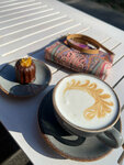 Вайб в кофейне, как будто пряничная. Кофе брал с сиропом соленая карамель, в итоге вкуса не почувствовал сиропа и кофе. Помол не очень, послевкусие отвратительное. Маленький ассортимент десертов, который выглядит несъедобно.
