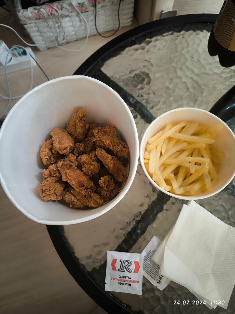 Сегодня побывал в этом заведении и от этого заведения остались отвратительные ощущения. Заказал ножки по азиатский которые невозможно было есть. Такое впечатление, что их просто разогрели из остатков вчерашней не проданной продукции. Чай продали чуть тёплый, даже заварной пакетик не хотел завариваться. Спросил про влажные салфетки, ответили что сегодня их нет, а руки можно помыть в туалете. В туалете такая грязь и вонизм, что желание туда войти и помыть руки сразу отпало. Ни кому не советую посещать это заведение Ростикс в торговом комплексе Кунцевский.
