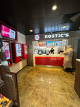 Пункт питания Rostic's расположен на 43 км Новорижского шоссе при движении из Москвы в область. Находится при автозаправке. Имеется помещение со столиками, где можно сделать заказ и перекусить. Персонал - представители Средней Азии. Слабовато, но всё же понимают и говорят по-русски. Сидя в машине, делать и получать заказ в очереди долго. Лучше припарковать машину рядом и сделать заказ внутри помещения самому через терминал или оператора. Наш заказ - три ведёрка куриных ножек, крылышек, стрипсов, наггетсов, картошки-фри приготовили за 10 минут. Качеством остались довольны - масло фритюра не прогорклое, курочка и картошка не пересушены, не сыроваты, всё сочное. Цена заказа - 2.000 ₽. Время ожидания минимальное. Мы довольны, что купили пищу на обед здесь. Обед был вкусным.