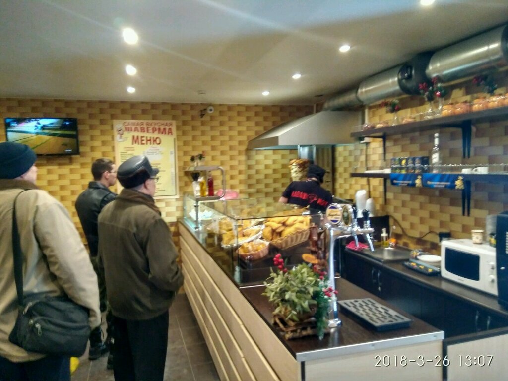Отличная шаверма, повар учитывает все пожелания, может сделать скидку, если живете недалеко, можете записать номер перевода, позвонить и сделать заказ заранее, очень удобно, мясо свежее, готовят быстро, стоит своих денег в диапазоне цена/качество