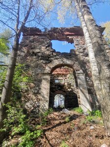 Руины колокольни финской церкви Уусикиркко (Leningrad Region, Vyborgskiy District, posyolok Polyany), landmark, attraction