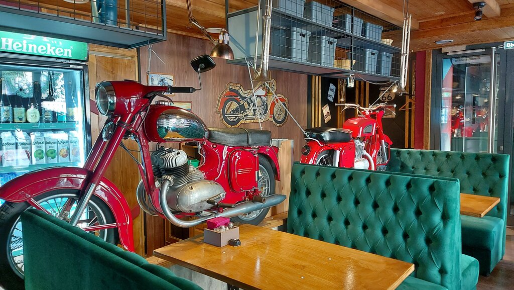 Бар не зашел. Персонал унылый. И это при том, что был четверг и людей почти не было. Когда успели устать не понятно. По антуражу, ничего интересного. По теликам гоняли форсаж. Почему в байк баре показывают форсаж, мне не понятно. Кухня тоже не удивила.