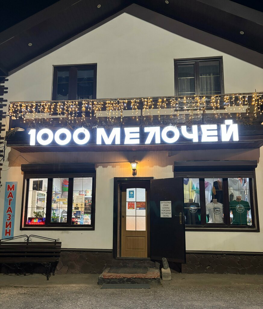Это единственный магазин, где можно найти много разных товаров от напитков до одежды, но это не продуктовый магазин много всяких мелочей для домашних нужд,не зря называется 1000 мелочей