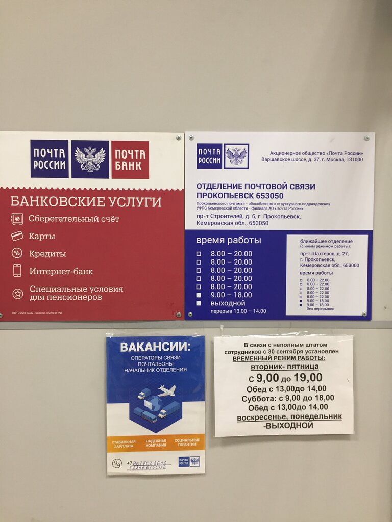 Otdeleniye pochtovoy svyazi Prokopyevsk 653050