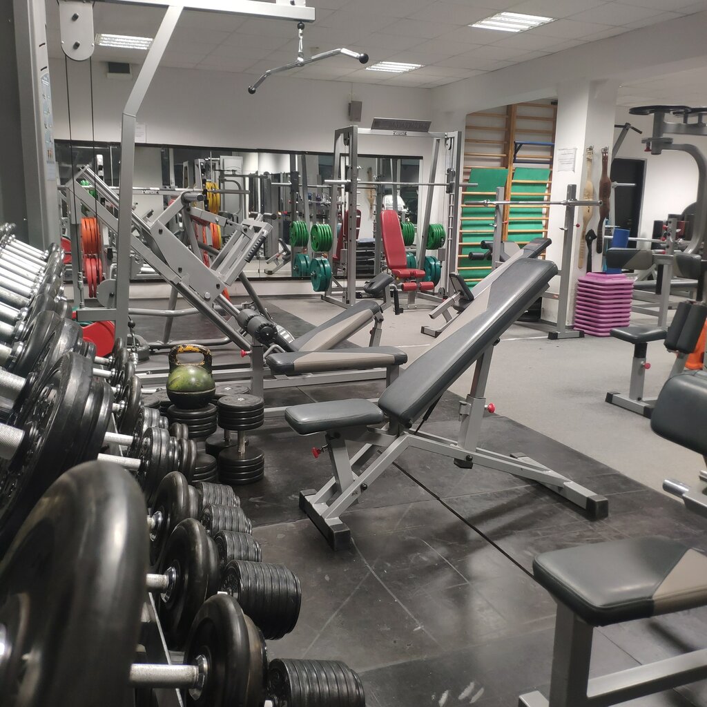 1004 профессианальный зал не для изнеженых подснежников, только тренажеры и ничего лишнего. Два зала, в которых есть всё что нужно на каждую группу мышц и гора блинов и штанг с запасом, много всевозможных кардиотренажеров, два полных гантейльных ряда(по одному в каждом зале), просторные душевые. Привезли пару новых тренажёров, кстати впервые вижу блины по 50кг это очень удобно. Антураж советских спортивных комплексов и красивый вид с 10ого этажа. Душно не бывает тут открываются все окна, но напольное покрытие пора бы обновить