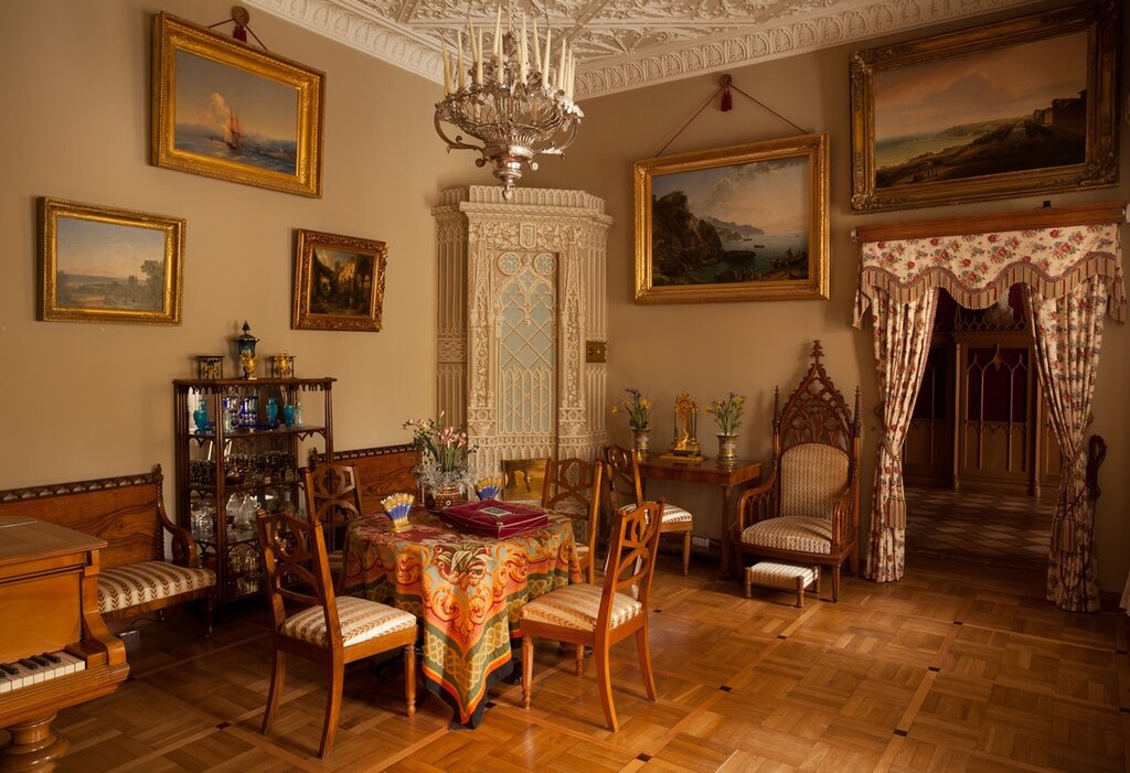 Летняя резиденция, любимое место отдыха Николая первого и его семьи. Парк Александрия - красивейший в любое время года. Сейчас вход бесплатный. Музей - как "живой" дом, очень домашний и уютный. Советую начать осмотр с третьего этажа. Там всего одна комната - кабинет Николая первого. Подзорная труба, "орало" (рупор) для передачи телеграмм, письменный стол и вид на залив. Спускаясь вниз по красивой лестнице, проходя жилые комнаты, детскую, столовую, библиотеку, спальни - всё сохранено бережно и много интересного можно найти. Например, датский, немецкий фарфор, вазы, подаренные Наполеоном, часы в виде готических соборов,необычная цветная посуда... Также коттедж полон картин, где можно насладиться Айвазовским. В каждой комнате есть краткое описание. Не стесняйтесь спрашивать у смотрительниц, все работники милые и знающие. Вход сейчас 400 рублей, есть льготы.