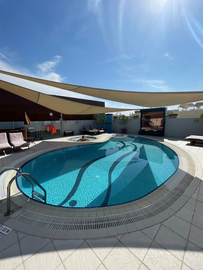 A great hotel for exploring Dubai. It is located 15 minutes from the old town. 10 minutes to the metro station Burjuman. The breakfasts and dinners are simple, but fine. The standard rooms are almost 40 meters. There is a kitchenette, a washing machine, a double bed is large enough, curtains are a real blackout even during the day. There is a swimming pool on the roof and a view of the city. The staff is polite, will always prompt and help, there is a room service.