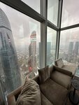 Останавливались в люксе на 68 этаже. Вид из окна, безусловно, впечатляет, но, к сожалению, общее впечатление от проживания было испорчено рядом существенных недочётов. Во-первых, номер оказался грязным уже при заселении. В ванной комнате крючок для полотенец держался буквально «на соплях», был заметен грибок, что совершенно недопустимо для отеля такого уровня. Ежедневной уборки номера не было вовсе. Отдельно хочу отметить проблему с лифтами. Несмотря на то, что их в здании три, работал только один. Ожидание могло доходить до 20 минут, что крайне неудобно, особенно утром и вечером, когда люди заканчивают работу, идут на обед или приходят на работу в офисы. К сожалению, эти моменты сильно испортили впечатление от пребывания. Хотелось бы, чтобы отель обратил внимание на состояние номеров и организацию работы, ведь расположение и вид действительно достойные, а сервис — нет.